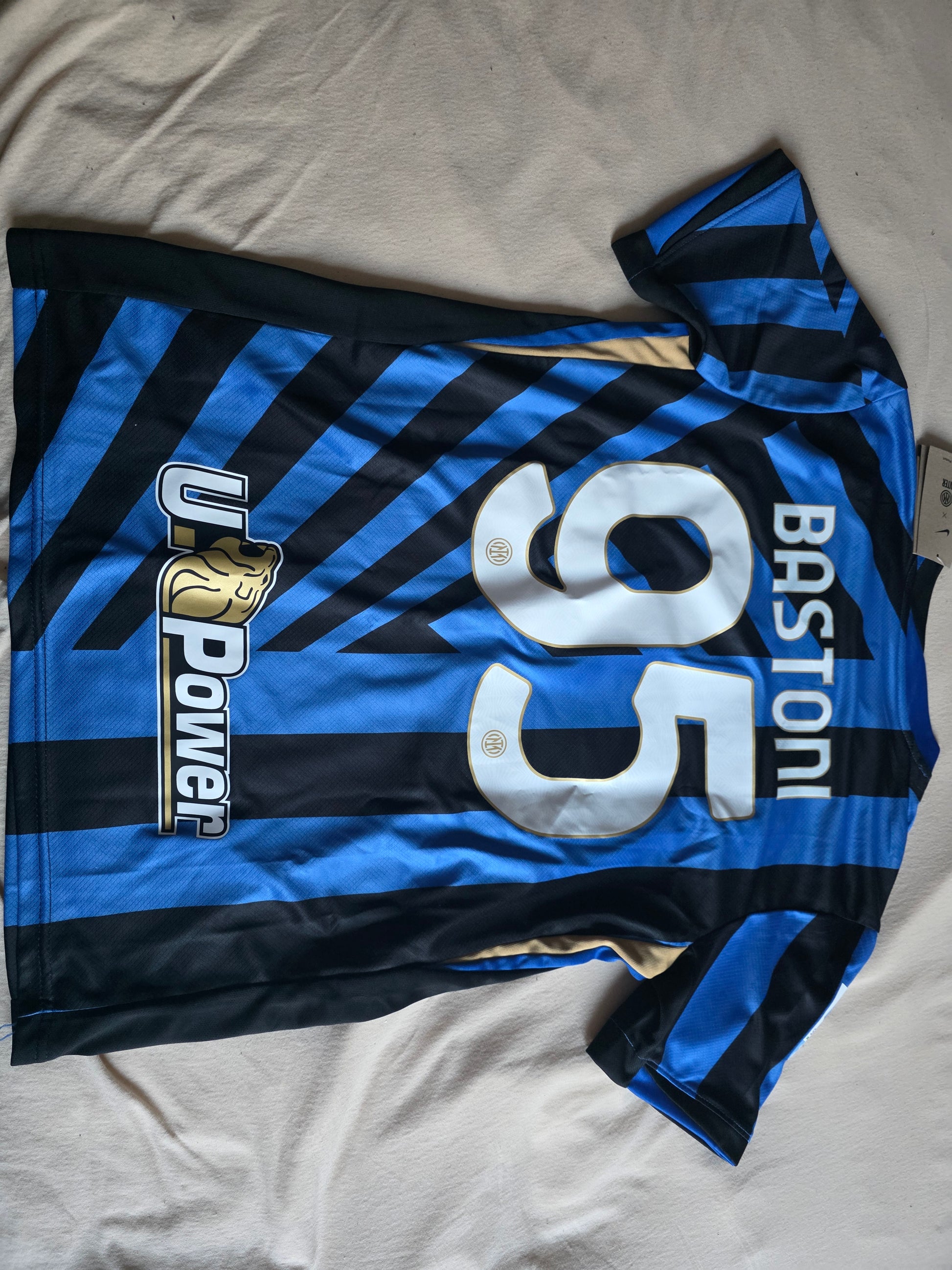 Stilvoll und bereit für die Unterstützung: Das offizielle Inter Mailand Trikot von Bastoni in Größe M. Ausgestattet mit dem renommierten Nike-Logo, präsentiert sich dieses Trikot in einem lebhaften Blauton, der die Leidenschaft und Energie des Vereins widerspiegelt. Ob für den Match-Besuch oder als Teil Ihrer Fan-Kollektion, dieses Trikot ist ein absolutes Muss für jeden Anhänger des italienischen Topclubs. Tragen Sie es mit Stolz oder bewahren Sie es als Sammlerstück auf – ein echtes Stück Fußballgeschichte